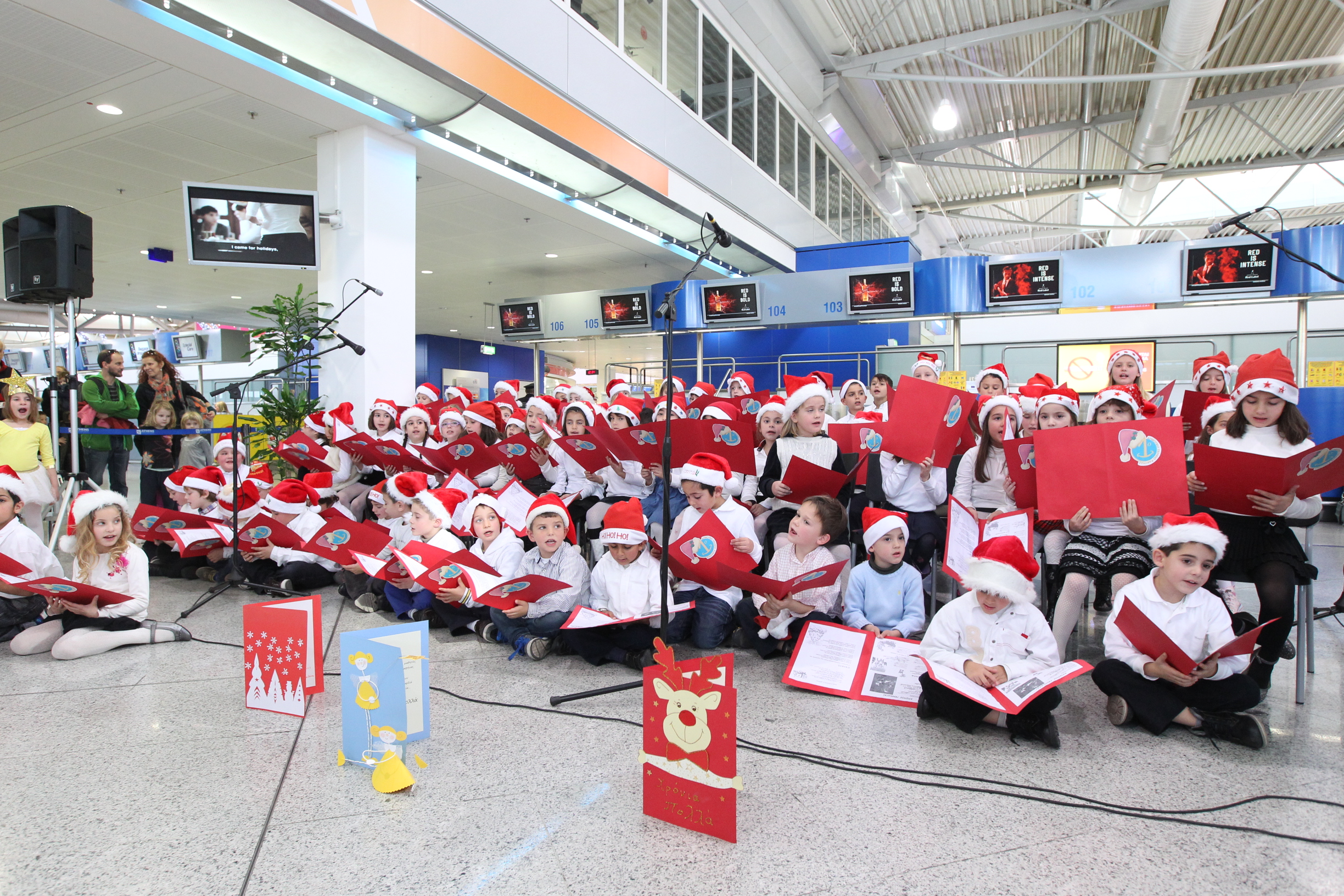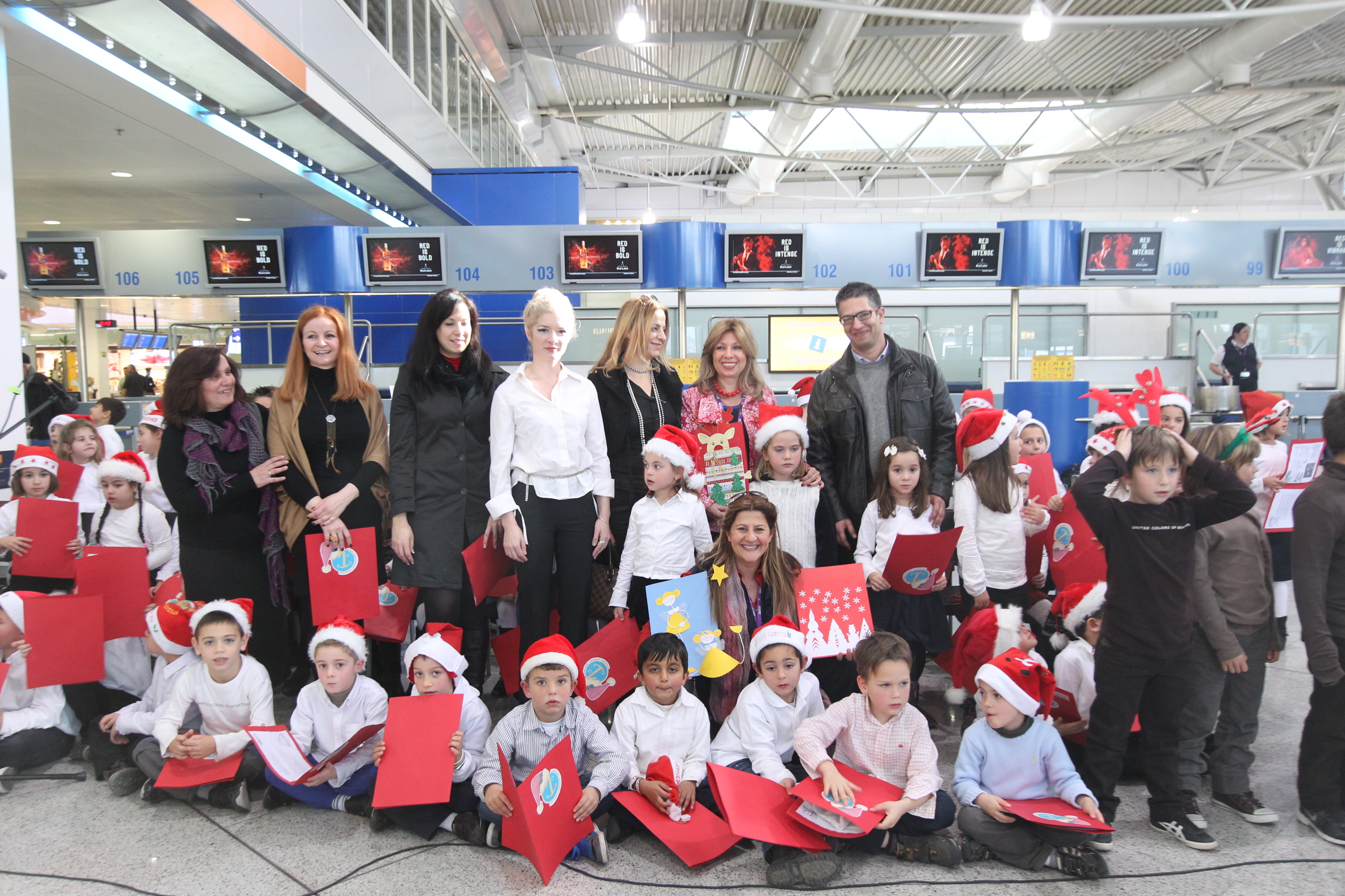 Σήμερα, στο αεροδρόμιό μας είχαμε εκλεκτούς μικρούς επιβάτες! Πλήθος από κόκκινα σκουφάκια μας χάρισαν τραγούδι και χρώμα στο επίπεδο αναχωρήσεων!