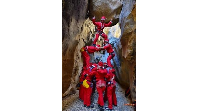 Σύμφωνα με το cretalive.gr, δεκαπέντε μέλη του ομίλου ντυθήκαν στα χρώματα του Αϊ Βασίλη και με απόλυτα χριστουγεννιάτικη διάθεση πραγματοποίησαν καταβάσεις σε φαράγγια με τεχνικά μέσα.