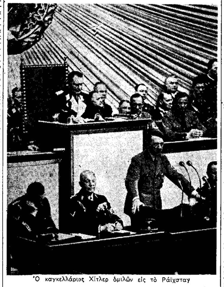 Στη χώρα μας γίνεται και πάλι αναφορά λίγο πριν το τέλος της ομιλίας του Γερμανού δικτάτορα. Όπως λέει, «τρέφουμε ειλικρινή συμπάθεια για τον φτωχό ελληνικό λαό, ο οποίος ηττήθηκε. Είναι το θύμα του βασιλιά του και μιας ολιγάριθμης κλίκας ιθυνόντων. Ωστόσο πολέμησε τόσο γενναία, ώστε και οι εχθροί τους δεν μπορούν να τους αρνηθούν την εκτίμησή τους». Το πόσο… συμπάθεια έδειξε προς τον ελληνικό λαό το γνωρίζουμε όλοι καλά.