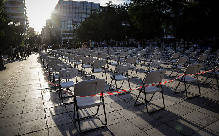 Στην πανευρωπαϊκή εκδήλωση διαμαρτυρίας «Empty Chairs», η οποία πραγματοποιείται σήμερα (06/05), στις 20:00, σε διάφορες πόλεις της Ελλάδας και της γηραιάς ηπείρου, έλαβαν μέρος εκπρόσωποι του χώρου της εστίασης στην Αθήνα, με την πλατεία Συντάγματος να έχει μια πρωτόγνωρη εικόνα, καθώς την είχαν «πλημμυρίσει» άδειες καρέκλες.
