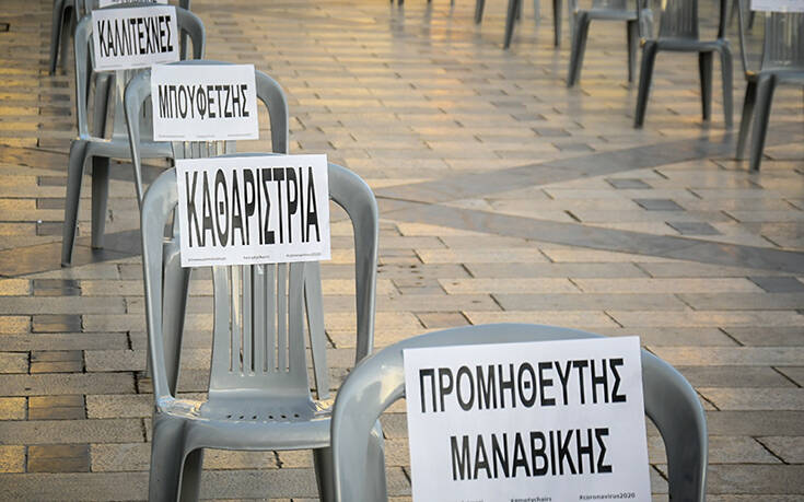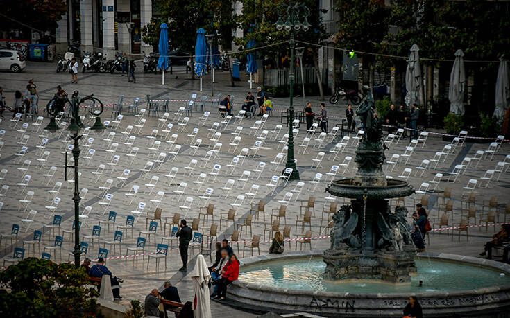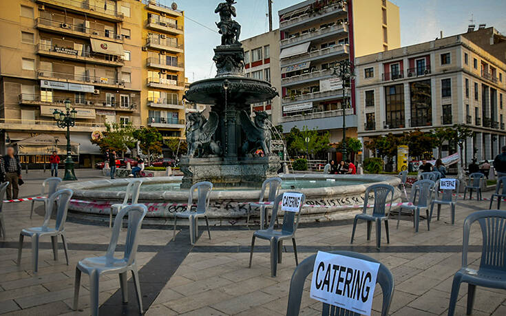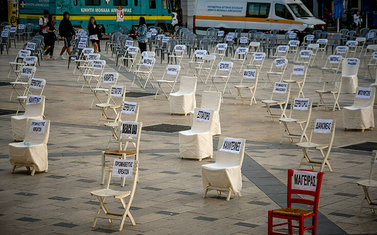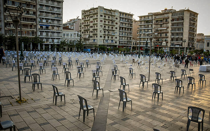 Περισσότερες από 1.200 άδειες καρέκλες τοποθετήθηκαν την Τετάρτη (06/05) στην πλατεία Γεωργίου της Πάτρας, στο πλαίσιο της εκδήλωσης διαμαρτυρίας «Empty Chairs» με αίτημα μέτρα για τη στήριξη των επαγγελματιών.