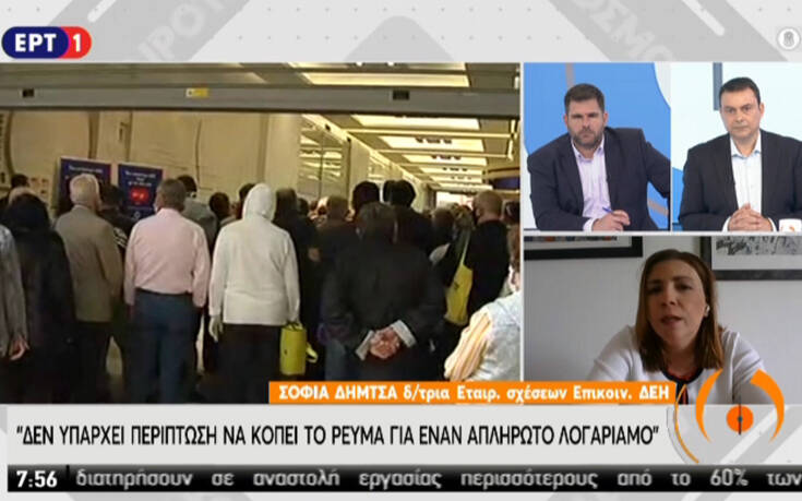 Για να φτάσει να κοπεί μία σύνδεση, το ιστορικό του πελάτη μελετάται, δεν υπάρχει περίπτωση να κοπεί για έναν λογαριασμό. Θα πρέπει να υπάρχει ιστορικό πολλών λογαριασμών που δεν έχουν πληρωθεί. Το ρεύμα κόβεται στους κακοπληρωτές, τόνισε η κα Δήμτσα.