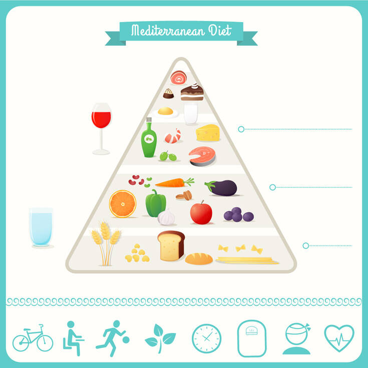 Τα κύρια πιάτα της Μεσογειακής διατροφής περιλαμβάνουν υψηλή κατανάλωση ελαιολάδου, καρπών, δημητριακών, ζυμαρικών, φρούτων, οσπρίων και λαχανικών. Οι συγκεκριμένες τροφές πρέπει να καταναλώνονται σε καθημερινή βάση. Πρόκειται για προϊόντα χαμηλά σε λίπος, με αρκετες φυτικές ίνες ικανά να μας παρέχουν την απαραίτητη ενέργεια που χρειαζόμαστε καθημερινά και συμβάλλουν στη μείωση της χοληστερόλης, στη ρύθμιση του σωματικό βάρους και στην καλύτερη λειτουργία του εντέρου.