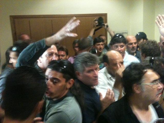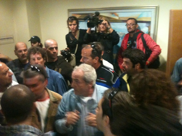 Αυτήν την ώρα οι εργαζόμενοι της Ναυπηγοεπισκευαστικής Ζώνης Περάματος έχουν εισβάλλει στα γραφεία του προέδρου του ΟΛΠ, Γιώργου Ανωμερίτη διαμαρτυρόμενοι για το 15ετες λουκέτο στα ναυπηγεία Σκαραμαγκά που σχεδιάζει η κυβέρνηση, ζητώντας την άμεση χωροθέτηση της Ν/Ζώνης με νόμο που θα απαγορεύει την αλλαγή χρήσης γης για τουλάχιστον 50 χρόνια καθώς και άμεσες επενδύσεις που θα εξασφαλίσουν μόνιμη και σταθερή δουλειά για όλους.