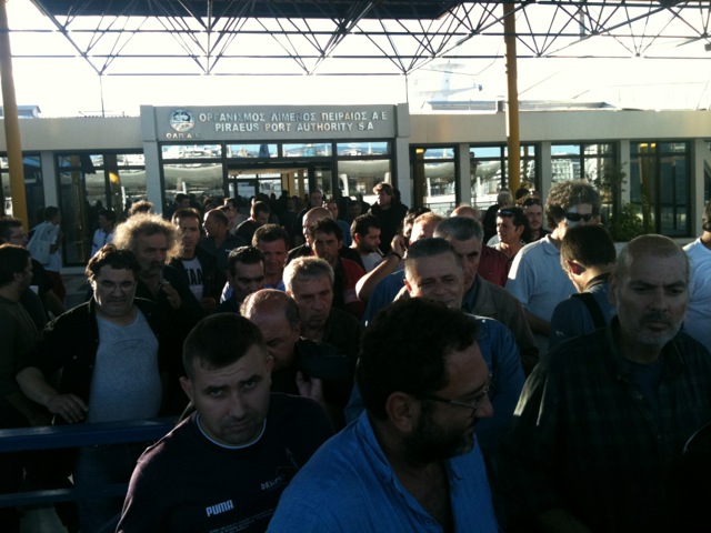 Πριν από λίγη ώρα εργαζόμενοι της Ναυπηγοεπισκευαστικής Ζώνης Περάματος εισέβαλαν στα γραφεία του προέδρου του Οργανισμού Λιμένος Πειραιώς, προκειμένου να του παραθέσουν τα αιτήματά τους και να του καταστήσουν σαφές ότι δεν πρόκειται να κάνουν πίσω.