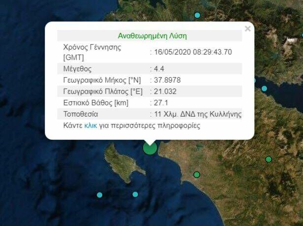 Το επίκεντρο του σεισμού ,είχε ένταση 4,4 βαθμών της κλίμακας Ρίχτερ, εντοπίστηκε 11 χιλιόμετρα δυτικά από την περιοχή της Κυλλήνης και είχε εστιακό βάθος 27,1 χιλιομέτρων.