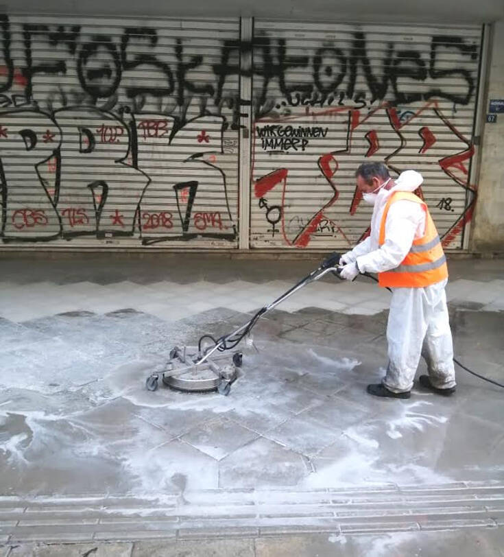 Δεκατέσσερα τελευταίας τεχνολογίας ειδικά μηχανήματα με τα οποία πλένονται και απολυμαίνονται με εντυπωσιακά αποτελέσματα πεζοδρόμια, πεζόδρομοι και άλλες μεγάλες επιφάνειες, βρίσκονται εδώ και μερικές μέρες στη διάθεση του δήμου Αθηναίων και χρησιμοποιούνται σε πρώτη φάση στο κέντρο και στην συνέχεια σε ολόκληρη την πόλη.