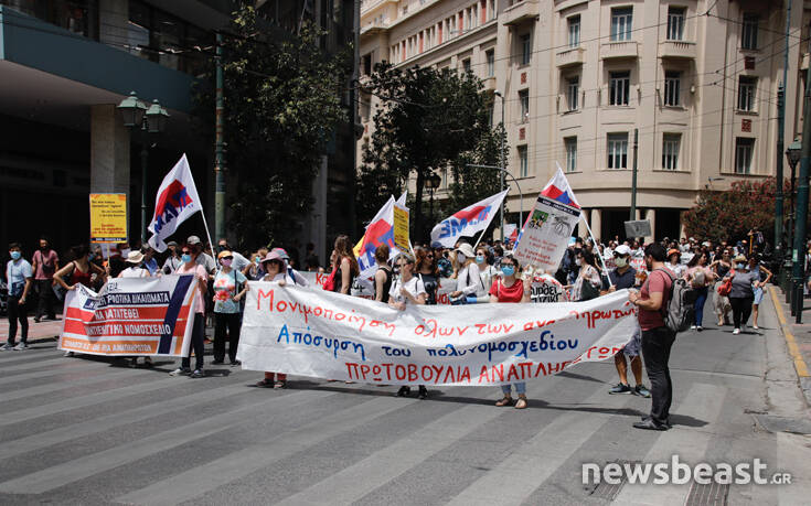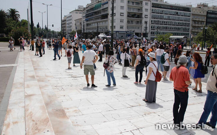 Οι συμμετέχοντες στη συγκέντρωση διαμαρτυρίας συγκεντρώθηκαν λίγο μετά τη μία το μεσημέρι στα Προπύλαια και από εκεί ξεκίνησαν πορεία προς τη Βουλή κρατώντας πανό και φωνάζοντας συνθήματα.
