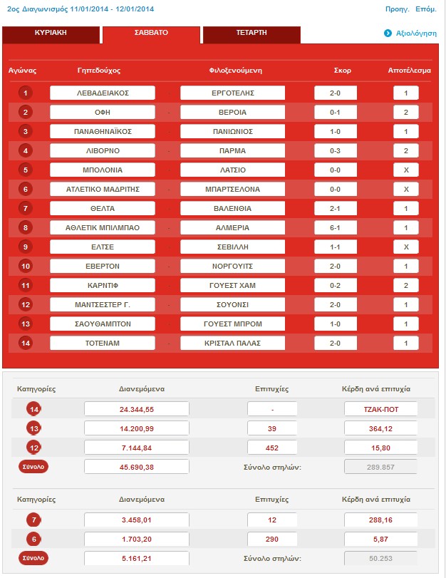 Κατά τη διαλογή του 2ου διαγωνισμού, σημειώθηκε τζακπότ στα 14άρια. Έτσι, το ποσό των 24.344 ευρώ μεταφέρεται στην ίδια κατηγορία στον επόμενο αντίστοιχο διαγωνισμό.