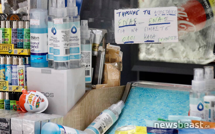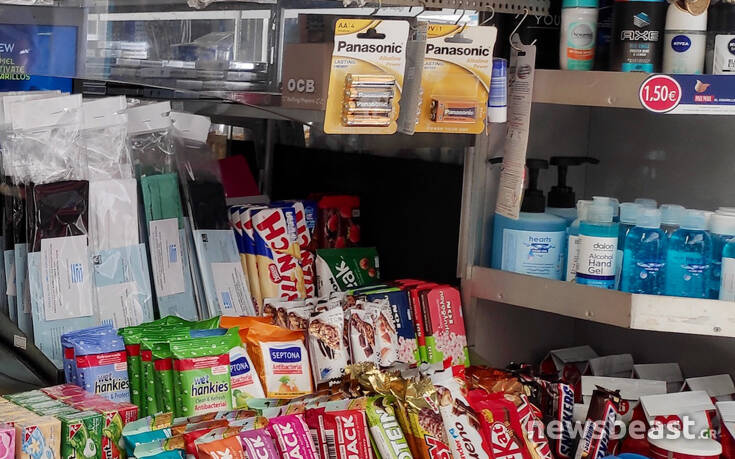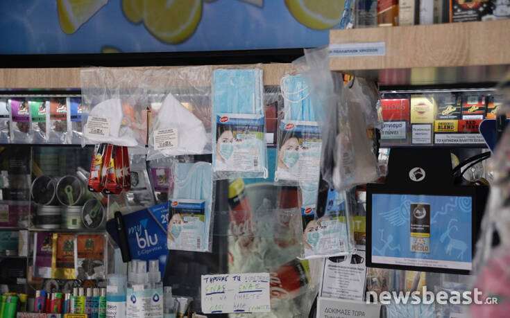 Ο φωτογραφικός φακός του newsbeast.gr σε μια γρήγορα βόλτα στο κέντρο της Αθήνας κατέγραψε μάσκες να κρέμονται στα περίπτερα και αντισηπτικά (μαντηλάκια και υγρά) να βρίσκονται στη σειρά έτσι ώστε να μπορεί να διαλέξει ο πελάτης ποιο θα προμηθευτεί.