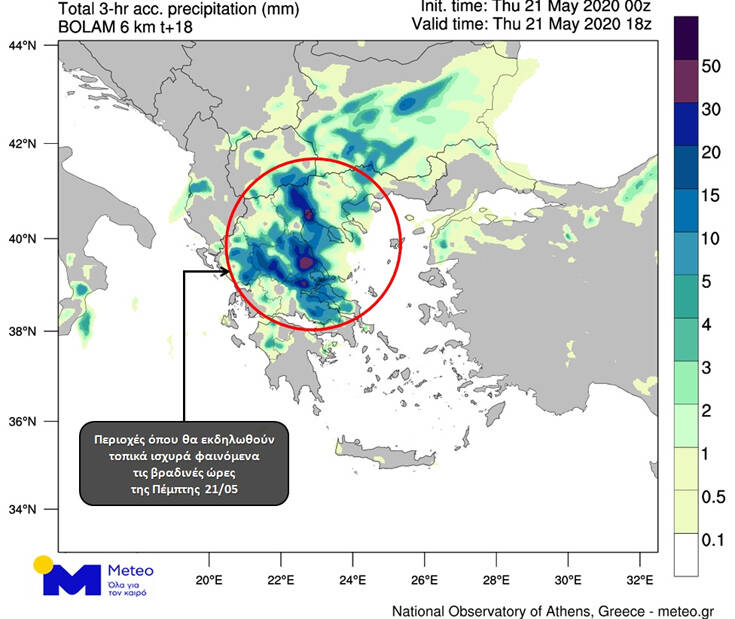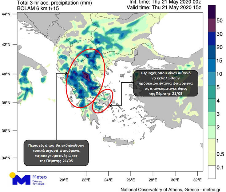 Οι βροχές που εκδηλώνονται τις πρωινές ώρες της Πέμπτης 21/05 στο Ιόνιο και στα δυτικά ηπειρωτικά, αναμένεται σταδιακά να ενταθούν και να εκδηλωθούν καταιγίδες.