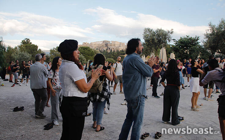 Η μουσική διαδήλωση στη Διονυσίου Αρεοπαγίτου ολοκληρώθηκε με τους καλλιτέχνες να αποχωρούν λίγο πριν τις 20:00, με κάποιους καλλιτέχνες να αφήνουν τα παπούτσια τους στο σημείο, ως ένδειξη διαμαρτυρίας.