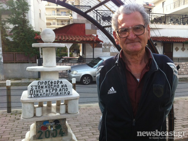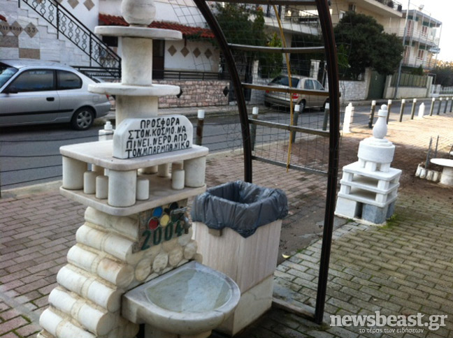 Ο μπάρμπα Νίκος, όμως, δεν έχει φροντίσει μόνο για το χώρο που θα κάθονται οι καλεσμένοι του. Έχει φτιάξει μια βρύση για να τους βάζει και νερό, όταν διψούν. «Προσφορά στον κόσμο να πίνει νερό από τον μπάρμπα Νίκο», έχει γράψει. Μάλιστα, έχει ντύσει με ξύλο και τα δύο παγκάκια που βρίσκονται πολύ κοντά στο δικό του. «Έχω ξοδέψει περίπου 4.000 με 5.000 ευρώ», συμπληρώνει.