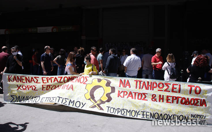 Συγκέντρωση διαμαρτυρίας πραγματοποίησαν στις 12 το μεσημέρι την Παρασκευή (22/5) έξω από το υπουργείο Εργασίας στην οδό Σταδίου εργαζόμενοι στον τουρισμό και τον επισιτισμό αντιδρώντας στα μέτρα που ανακοίνωσε η κυβέρνηση.