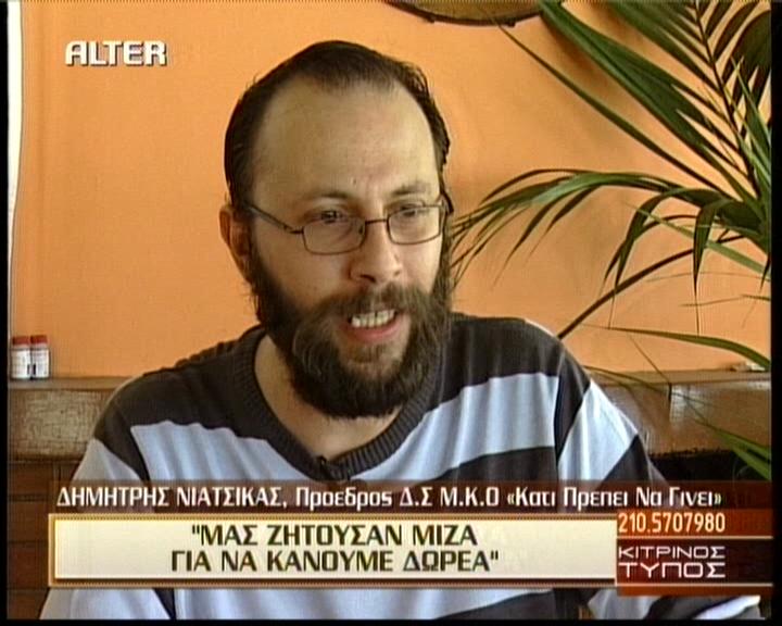 Σύμφωνα με τον κύριο Δημήτρη Νιάτσικα, πρόεδρο της μη κυβερνητικής οργάνωσης «Κάτι Πρέπει Να Γίνει», προκειμένου να κάνουν δωρεά ένα πυροσβεστικό όχημα τους ζητούν μίζα. Το κόλπο έχει ως εξής: αγοράζουν από την εταιρεία οχημάτων απλή υδροφόρα και χρεώνουν πυροσβεστικό όχημα. Τη διαφορά φυσικά τη βάζουν στην τσέπη.