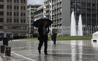 Έτσι, οι περισσότεροι παρά τα καλοκαιρινά ρούχα τους είχαν μαζί τους και την ομπρέλα τους που την άνοιξαν για να προστατευθούν από τα νερά.