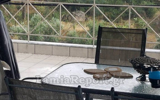 Χαρακτηριστικό του άστατου καιρού είναι ότι την ίδια ώρα στο κέντρο της Λαμίας, αλλά και πιο βόρεια, υπήρχε ήλιος.