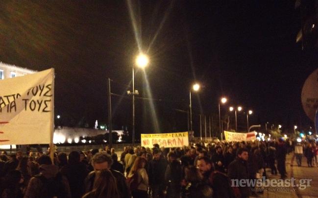 Στο Σύνταγμα βρίσκεται η πορεία διαμαρτυρίας που πραγματοποιεί η ΑΔΕΔΥ καταγγέλλοντας την απαγόρευση της συγκέντρωσης που είχε προκηρυχθεί για τις 8 Ιανουαρίου κατά της ανάληψης της προεδρίας της ΕΕ από τη χώρα μας, αλλά και τη σύλληψη συνδικαλιστή μέλους της.