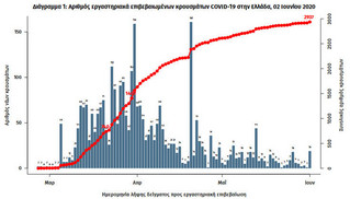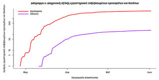 Την ίδια ώρα, σύμφωνα με γράφημα και η καμπύλη του κορονοϊού στην Ελλάδα παραμένει ίσια.