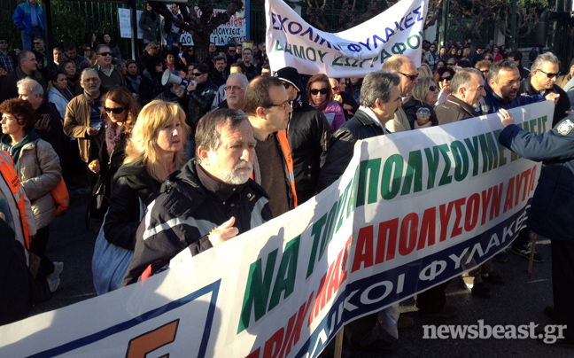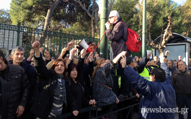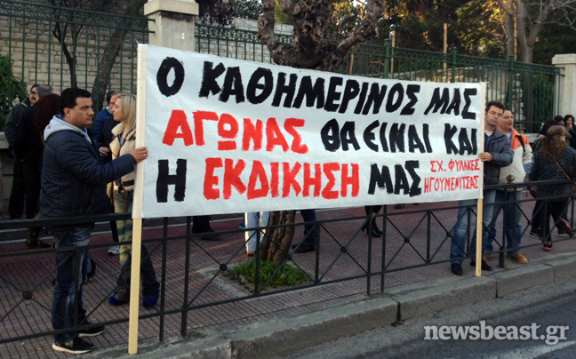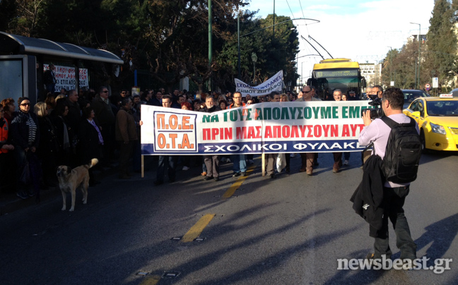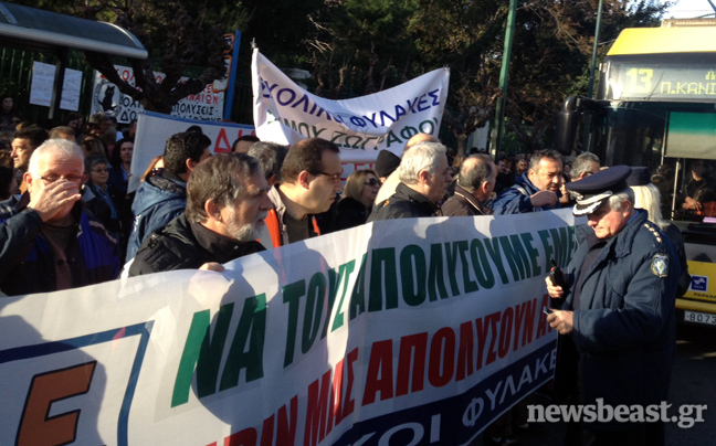 Συγκέντρωση διαμαρτυρίας πραγματοποιούν εδώ και λίγη ώρα οι σχολικοί φύλακες έξω από το υπουργείο Διοικητικής Μεταρρύθμισης.