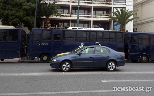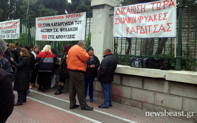 Διαμαρτύρονται και σήμερα έξω από το υπουργείο Διοικητικής Μεταρρύθμισης σχολικοί φύλακες.