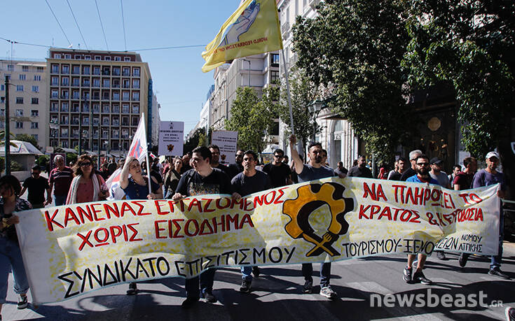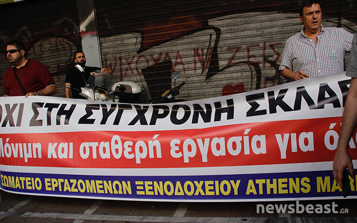 Στο υπουργείο Εργασίας συγκεντρώθηκαν στις 16:00 το απόγευμα της Πέμπτης εργαζόμενοι στον τουρισμό και τον επισιτισμό.