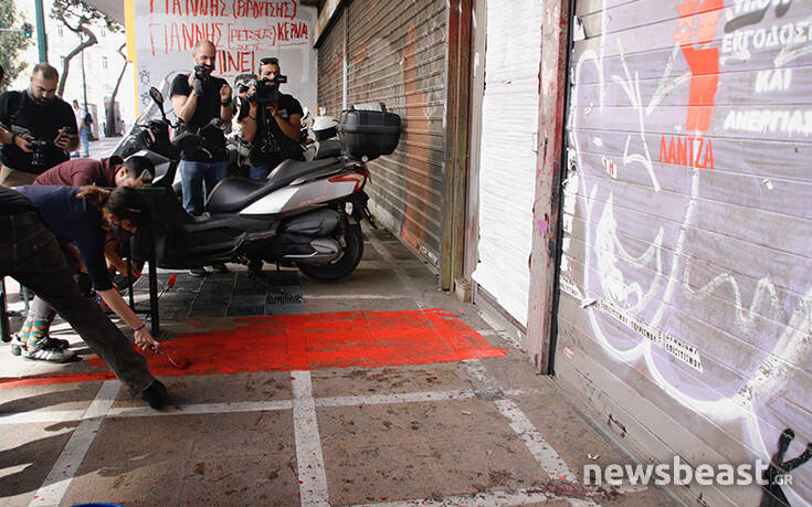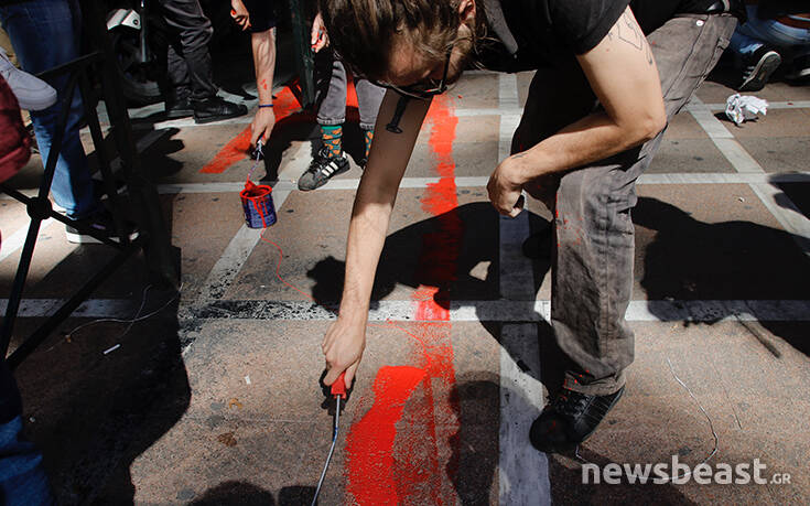 Μάλιστα έβαψαν συμβολικά «κόκκινο χαλί» στους εργοδότες στην είσοδο του υπουργείου.