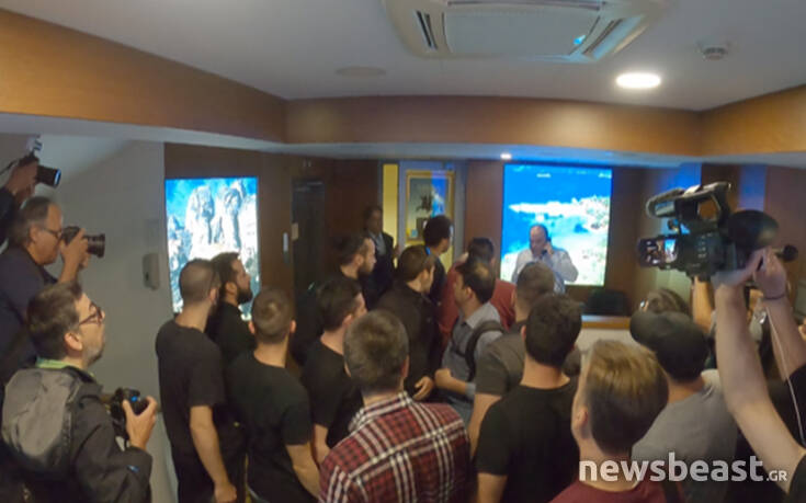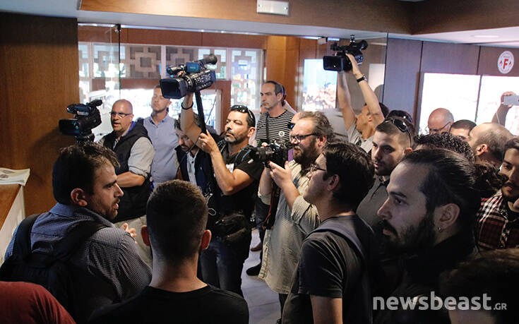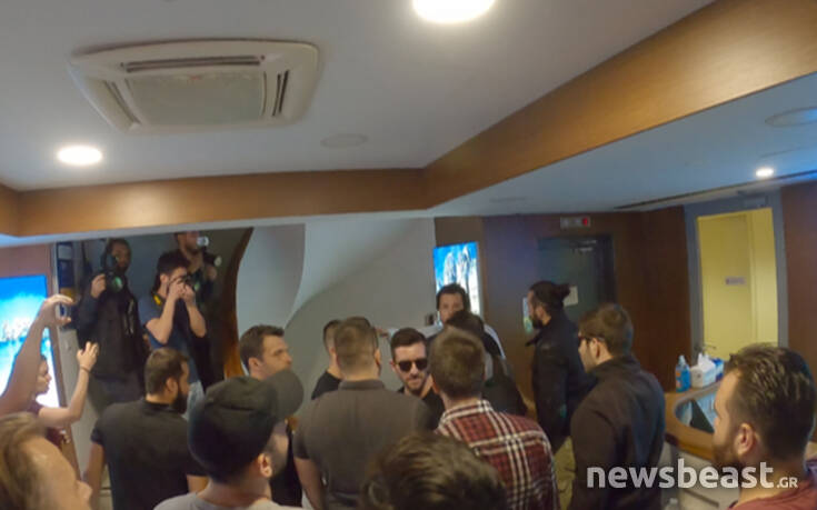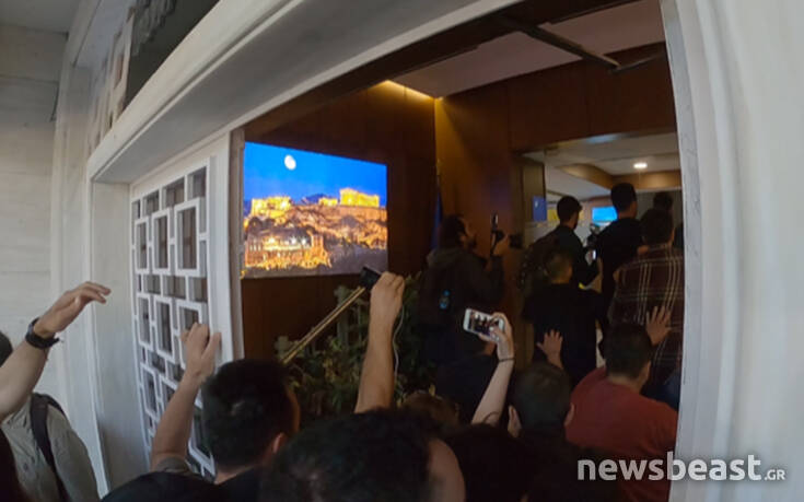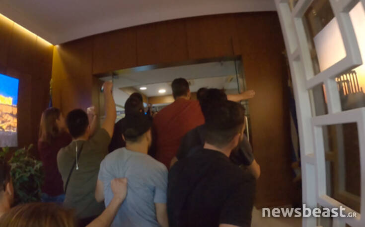 Οι διαδηλωτές που έφτασαν στο σημείο με πορεία που είχαν ξεκινήσει από το υπουργείο Εργασίας, μπήκαν στο λόμπι του κτιρίου, αιφνιδιάζοντας τον φύλακα.