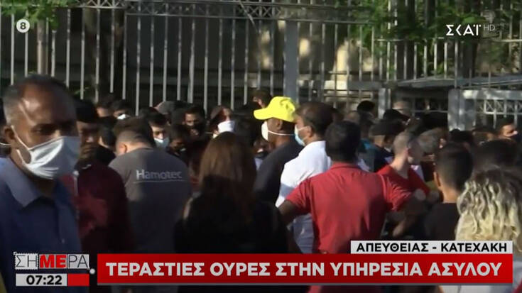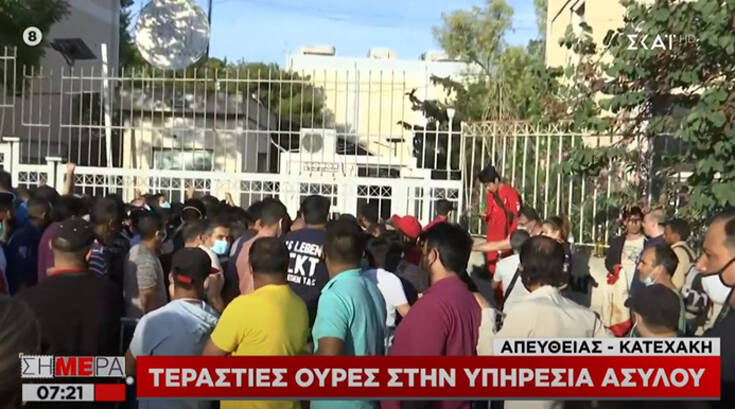 Δεκάδες πρόσφυγες και μετανάστες συγκεντρώθηκαν εν μέσω πανδημίας κορονοϊού για να λάβουν τα απαραίτητα έγγραφα με αποτέλεσμα να έχουν δημιουργηθεί μεγάλες ουρές, σύμφωνα με το ρεπορτάζ του ΣΚΑΪ.