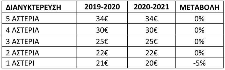 – Μείωση ιδιωτικής συμμετοχής σε όλα τα ξενοδοχεία
