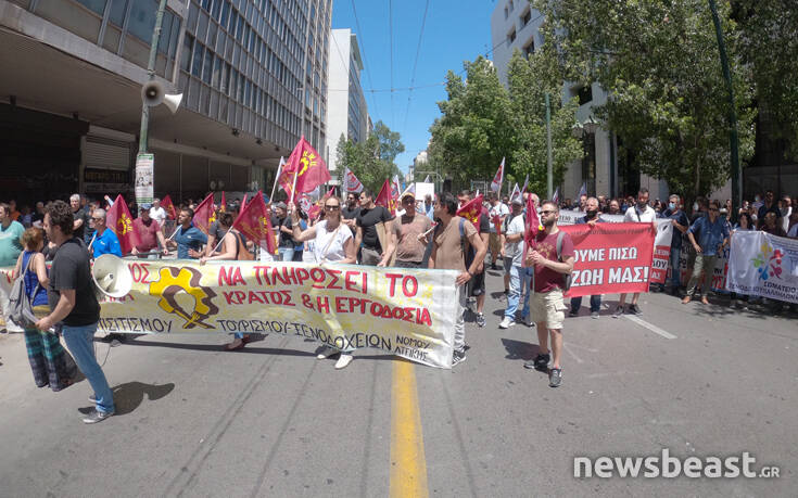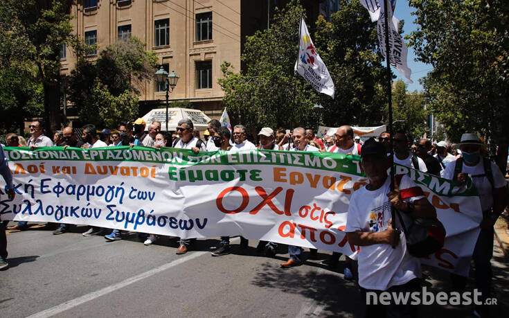 Ξεκίνησε η πορεία των εργαζομένων στον επισιτισμό-τουρισμό προς τη Βουλή.