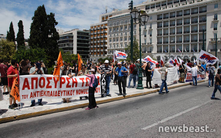 Με κεντρικό σύνθημα «Οι εκπαιδευτικοί έχουν φωνή, αυτό το νομοσχέδιο να μην ψηφιστεί» οι διαδηλωτές και οι διαδηλώτριες έχουν συγκεντρωθεί στο Σύνταγμα, μπροστά από την Βουλή και ζητούν την απόσυρση του πολυνομοσχεδίου καθώς και την απόσυρση της τροπολογίας για την ζωντανή αναμετάδοση των μαθημάτων με κάμερες στα σχολεία.