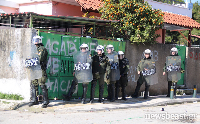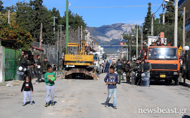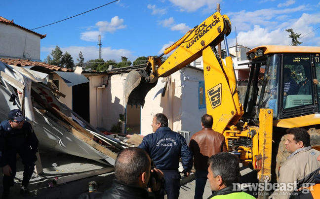 Μέχρι στιγμής τρία έχουν κατεδαφιστεί ενώ έντονη είναι η παρουσία της αστυνομίας στο σημείο.