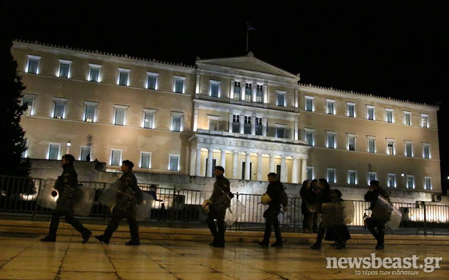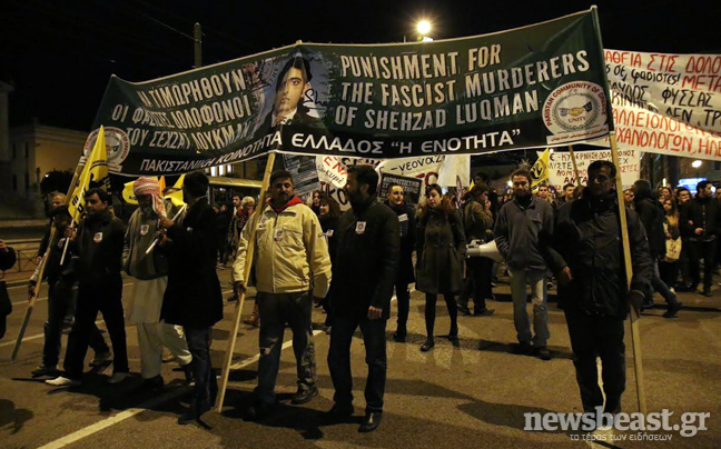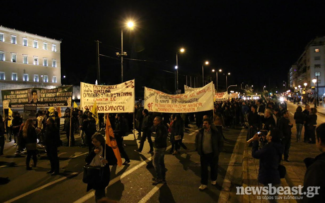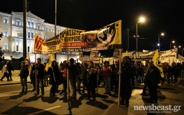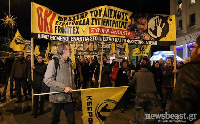 Αντιφασιστική πορεία ξεκίνησε πριν από λίγο έξω από τα Προπύλαια. Η πορεία κινείται προς τα γραφεία της Ευρωπαϊκής Ένωσης.