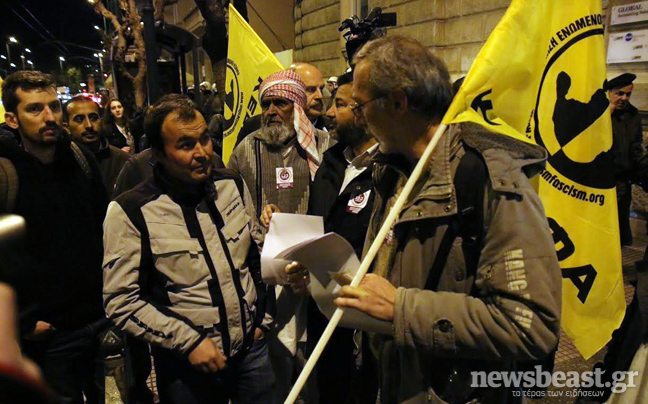 Προηγήθηκε αντιρατσιστικό συλλαλητήριο στα Προπύλαια που διοργάνωσαν η ΚΕΕΡΦΑ (Κίνηση Ενάντια στο Ρατσισμό και τη Φασιστική Απειλή), η Αφγανική Κοινότητα Μεταναστών και Προσφύγων στην Ελλάδα, η Πακιστανική Κοινότητα Ελλάδος «ΕΝΟΤΗΤΑ», το Μπαγκλαντεσιανό Επιμελητήριο Αθήνας, φοιτητικοί σύλλογοι, συνδικάτα, η ΑΝΤΑΡΣΥΑ και η Πρωτοβουλία αγώνα 2014-Για την έξοδο από το ευρώ και την ΕΕ.