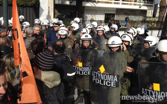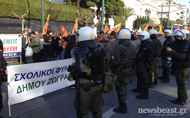 Απέναντι τους έχουν παραταχθεί ισχυρές αστυνομικές δυνάμεις.