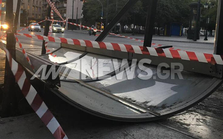 Η γυναίκα τραυματίστηκε ελαφρά στο χέρι. Από την πρόσκρουση του λεωφορείου καταστράφηκε το στέγαστρο στη στάση.