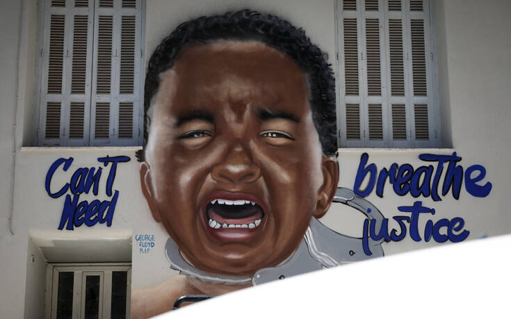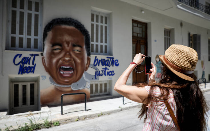Ένα τέτοιο κοσμεί τις τελευταίες ώρες το Μεταξουργείο, του street artist «Hambas». Σε αυτό, αναγράφονται οι φράσεις «Can’t breathe» (Δεν μπορώ να αναπνεύσω) και «Need Justice» (Χρειάζομαι Δικαιοσύνη).