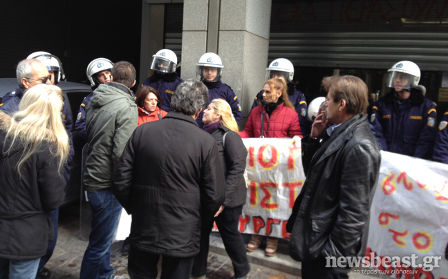 Έξω από το υπουργείο βρίσκονται αστυνομικές δυνάμεις.