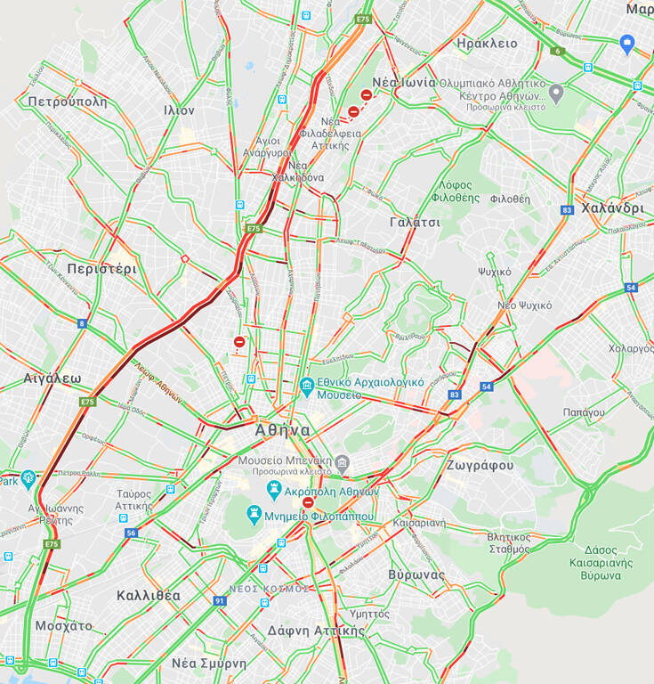 Σύμφωνα με την Τροχαία, η κίνηση αυτήν την ώρα καταγράφεται από την Ιερά Οδό μέχρι την Αχαρνών.
