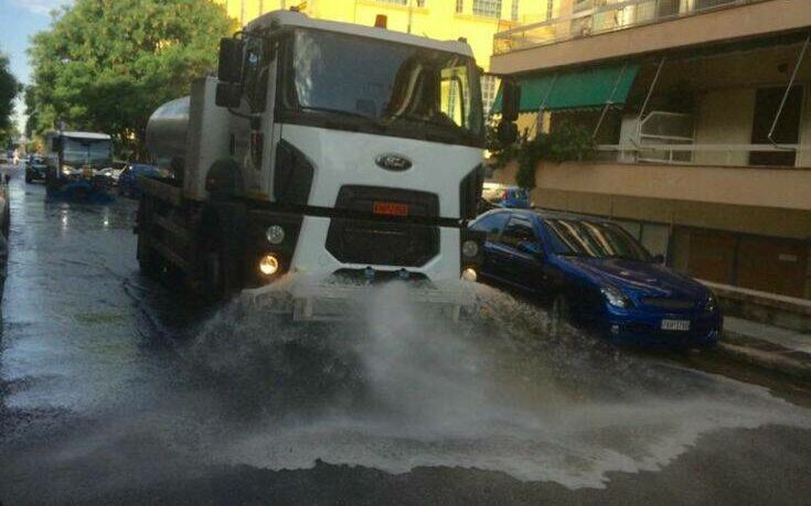Στη μεγάλη επιχείρηση υδροσάρωσης και καθαρισμού συμμετείχαν πέντε σάρωθρα, πέντε μικρά πλυστικά, έξι μεγάλα πλυστικά και δύο υδροφόρες των 10 τόνων.