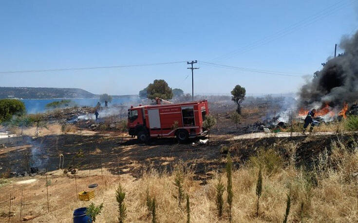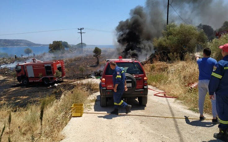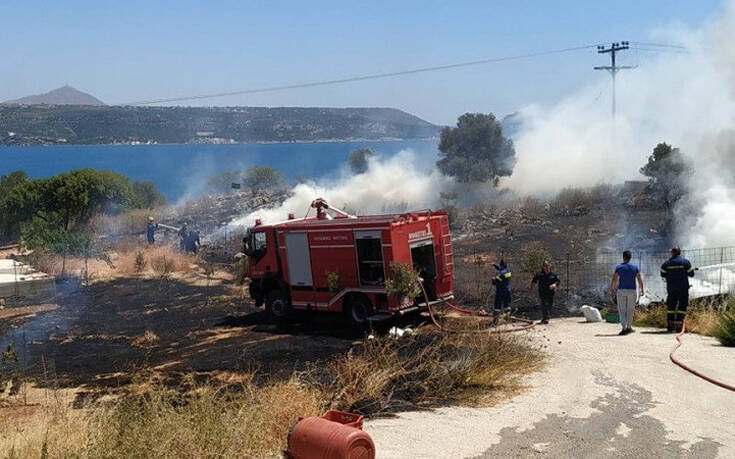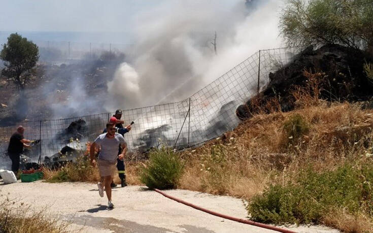 Έξι οχήματα της πυροσβεστικής έφτασαν στον τόπο του συμβάντος προσπαθώντας να αποτρέψουν την επέκταση της φωτιάς προς την εθνική οδό.