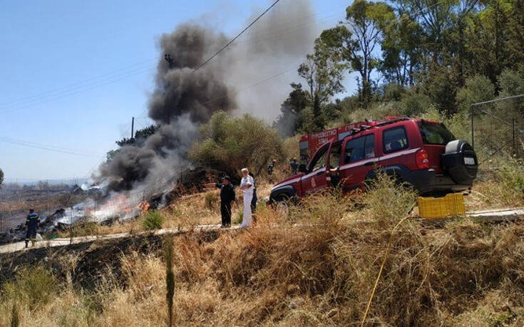 Οι καιρικές συνθήκες και κυρίως οι ριπές αέρα αλλά και το γεγονός ότι πέρα από τη χορτολιβαδική έκταση καίγονταν γυαλιά και λάστιχα, δεν βοηθούσαν στην κατάσβεση της φωτιάς.
