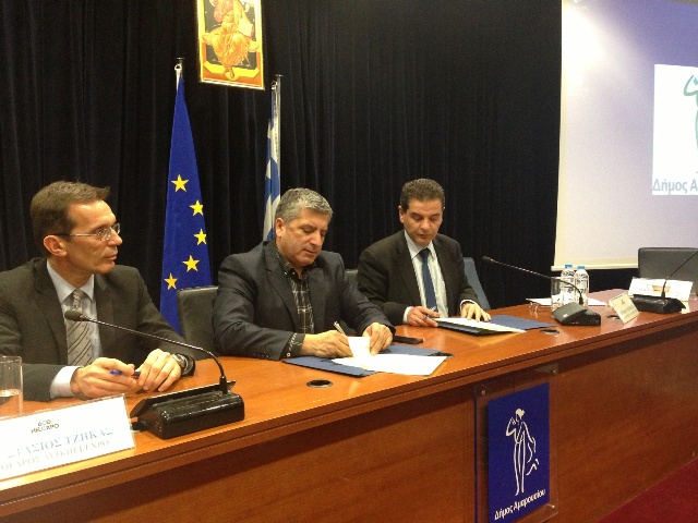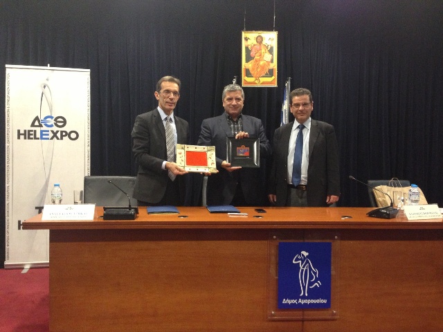 Τη συνεργασία του δήμου Αμαρουσίου με τη ΔΕΘ HELEXPO Α.Ε. μέσω της υπογραφής σχετικού συμφώνου για την ανάπτυξη κοινών συνεργιών αμοιβαία επωφελών για τις δύο πλευρές ανακοίνωσαν ο δήμαρχος Αμαρουσίου Γιώργος Πατούλης, ο πρόεδρος της ΔΕΘ HELEXPO Α.Ε. Τάσος Τζήκας και ο διευθύνων Σύμβουλος της ΔΕΘ HELEXPO Α.Ε. Κυριάκος Ποζρικίδης, σε συνέντευξη Τύπου που πραγματοποιήθηκε στο δημαρχείο Αμαρουσίου.