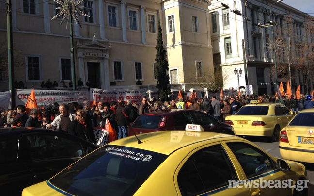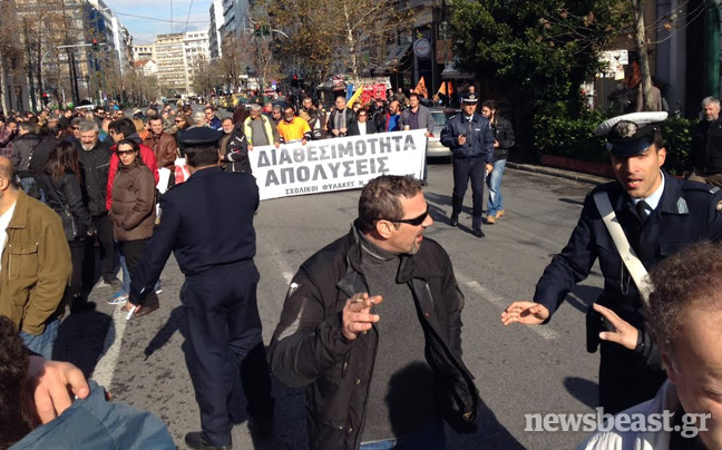 Οι συγκεντρωμένοι έξω από το Συμβούλιο της Επικρατείας διαπραγματεύονται με την αστυνομία το κλείσιμο του δρόμου προκειμένου να εντείνουν τη διαμαρτυρία τους.