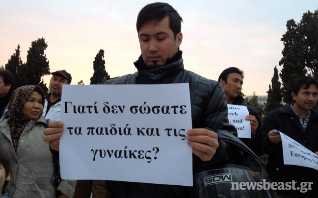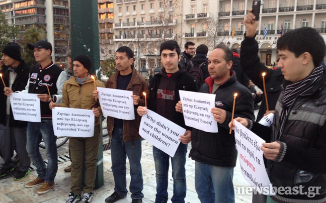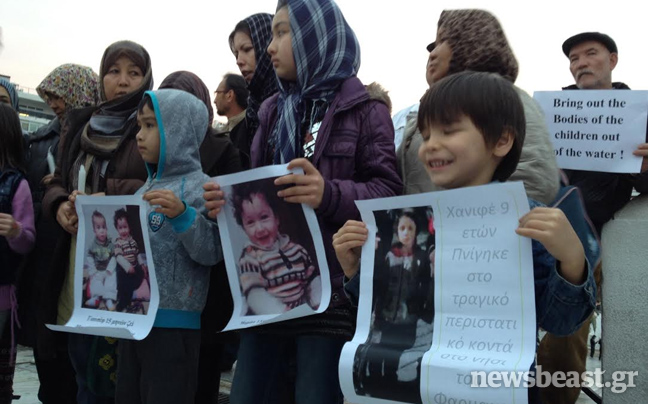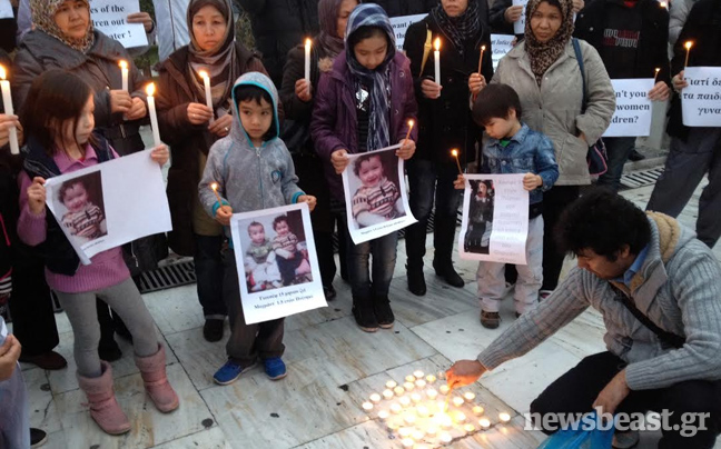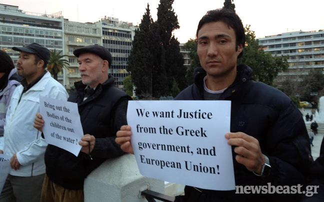 Στο πάνω μέρος της πλατείας Συντάγματος έχουν συγκεντρωθεί οικογένειες Αφγανών που ζουν στην Ελλάδα στη συγκέντρωση της αφγανικής κοινότητας σε ένδειξη διαμαρτυρίας για τους νεκρούς πρόσφυγες στο Φαρμακονήσι.