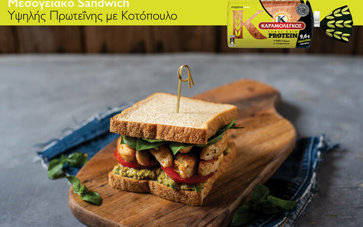 Μεσογειακό Sandwich Υψηλής Πρωτεΐνης με Κοτόπουλο
