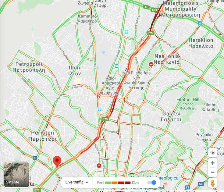 Προβλήματα υπάρχουν ακόμα και στην εθνική οδό Αθηνών-Λαμίας με κατεύθυνση προς Λαμία στο ύψος των Αγίων Αναργύρων, της Χαλκηδόνας και της Μεταμόρφωσης.