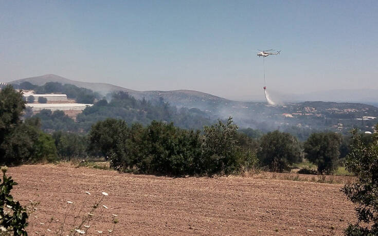 Εναέρια μέσα και επίγειες δυνάμεις της Πυροσβεστικής και εθελοντές περιόρισαν τη φωτιά με αποτέλεσμα στις 2.00 μ.μ. να μην υπάρχει ενεργό μέτωπο.