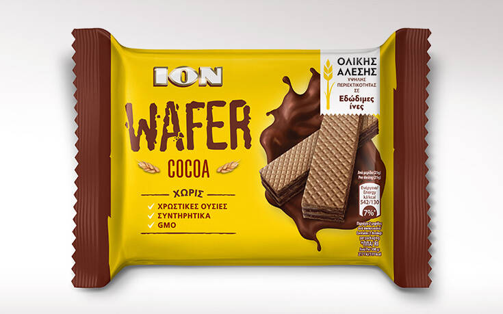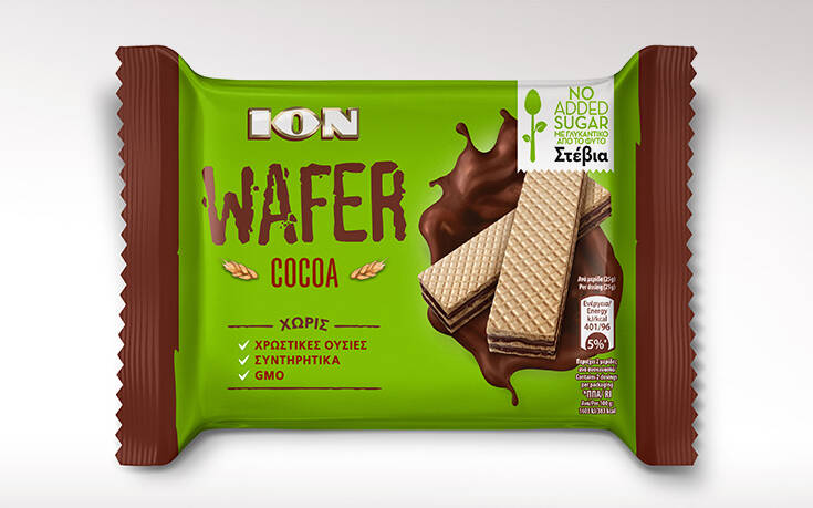 Η καινοτομία και η εξέλιξη της ΙΟΝ στα προϊόντα κακάο και σοκολάτας συνεχίζεται με τη νέα σειρά γκοφρέτας, ΙΟΝ WAFER. Η νέα σειρά είναι ειδικά φτιαγμένη για τους οπαδούς της αυθεντικής ανάλαφρης γκοφρέτας, χωρίς γενετικά τροποποιημένες πρώτες ύλες (non GMOs), χρωστικές, συντηρητικά, όπως και όλα τα προϊόντα μας.